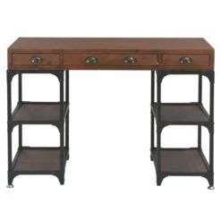 Scrivania Con Regolazione Altezza Elettrica 140x70x72-116 Cm In Metallo E Truciolare Teak E Nero