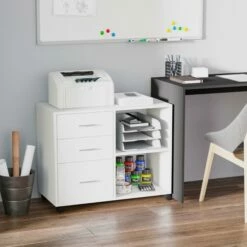 Cassettiera Portadocumenti Da Ufficio 40x35x60 Cm In Legno Bianco