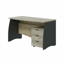 Scrivania Decorativa, Colore Bianco E Rovere, Cm 65 X 180 X 48