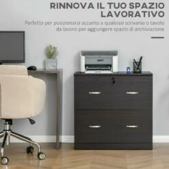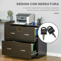 Cassettiera Portadocumenti 74x42x72 Cm 2 Cassetti Con Chiavi In Truciolare Noce