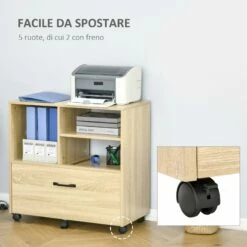 - CON 5 RUOTE: Il mobile per stampante è dotato di 4 ruote (di cui 2 con freno) per spostarlo comodamente.