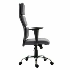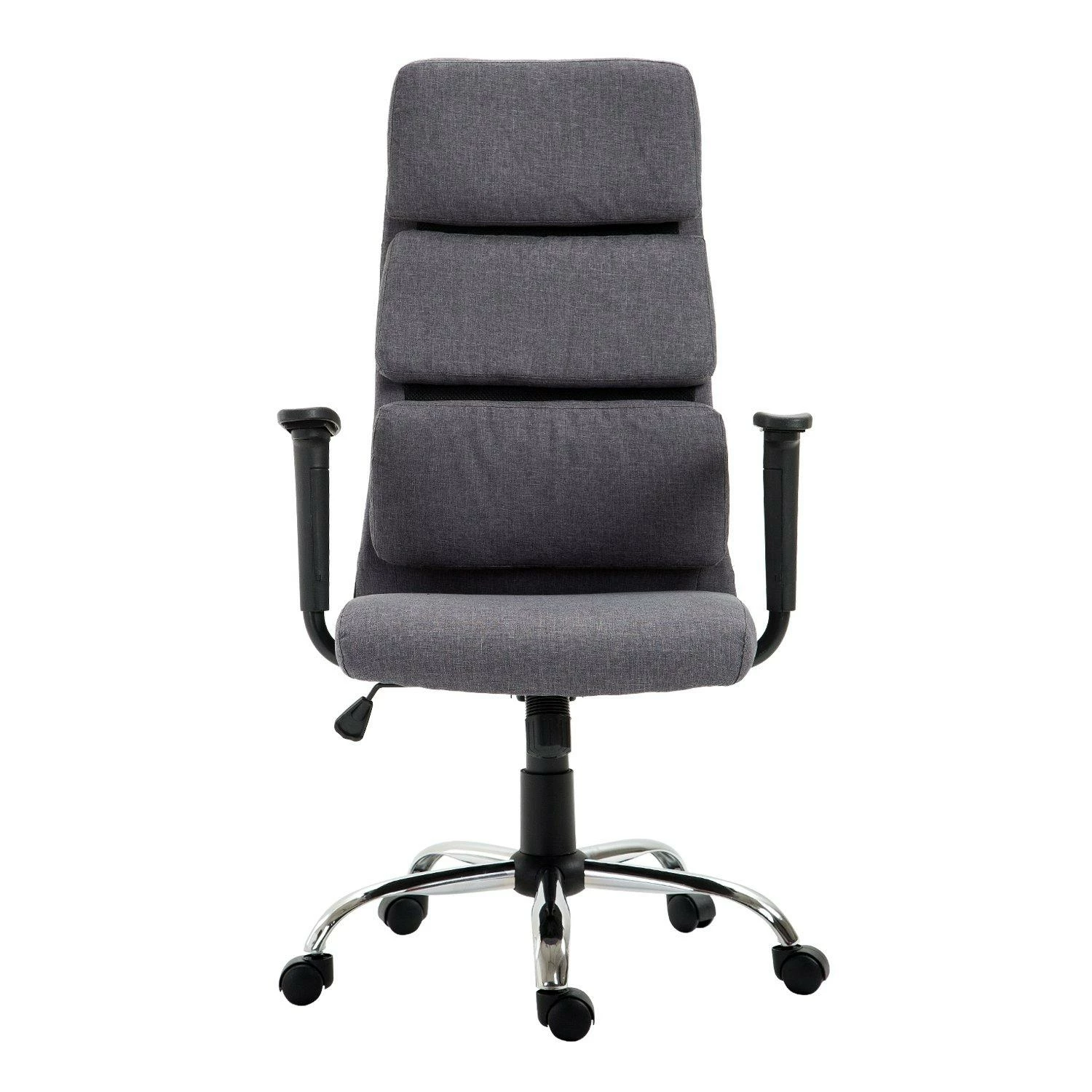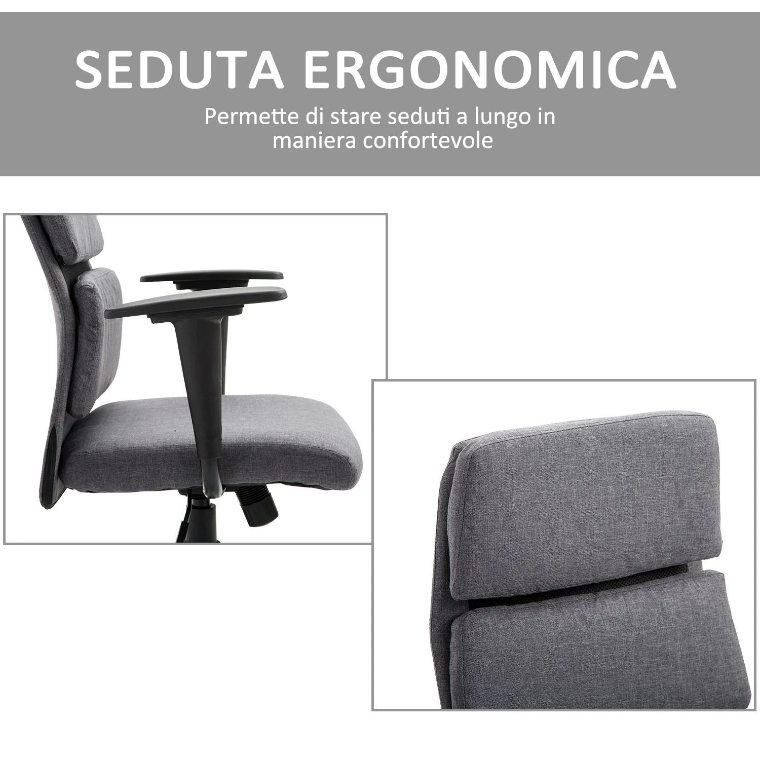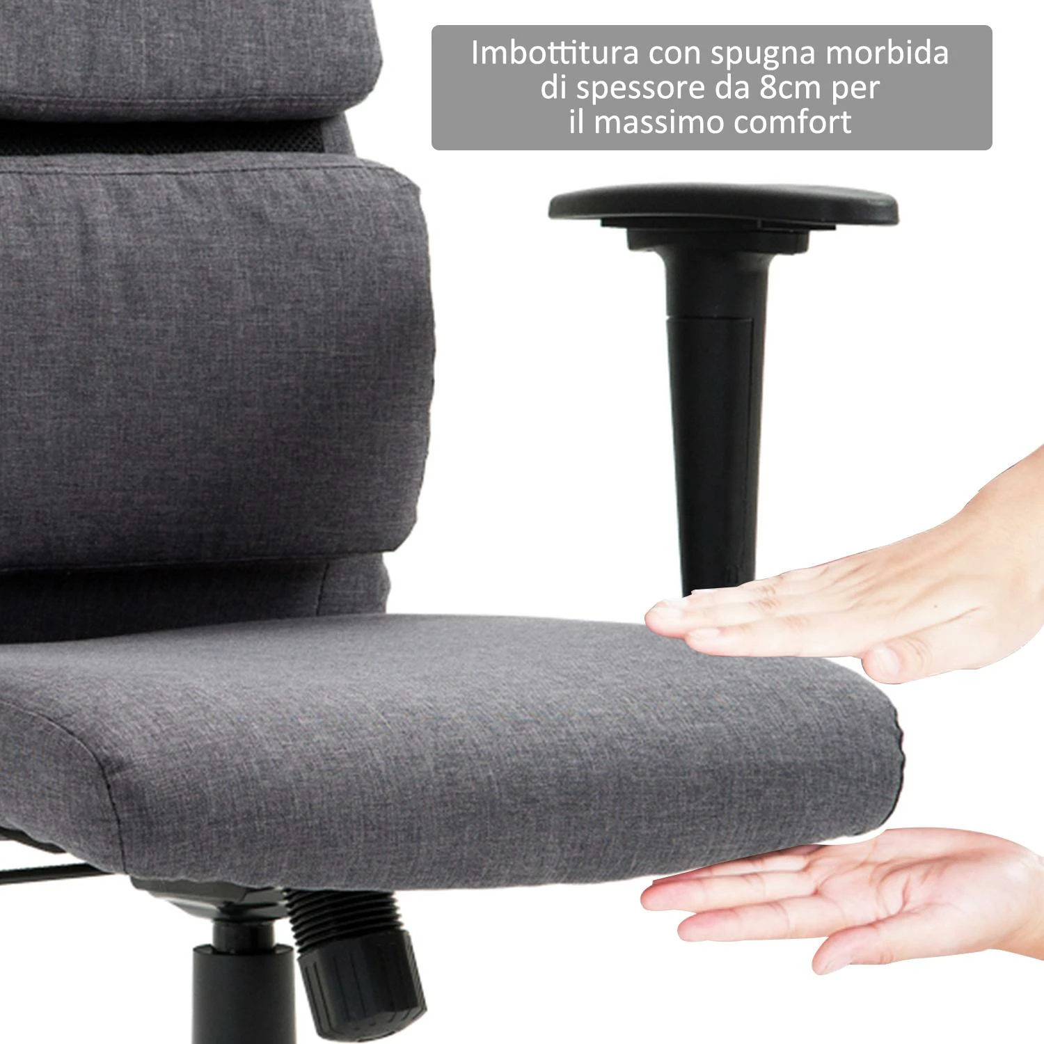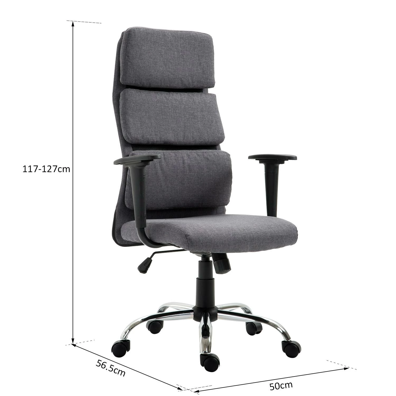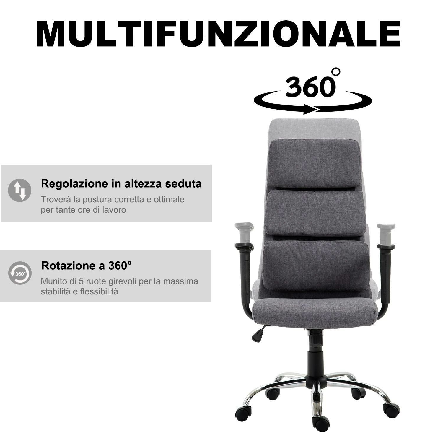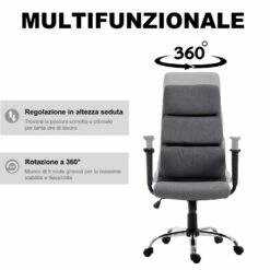 Poltrona da Ufficio Girevole Schienale Alto Regolabile in Tessuto Grigio 50×56.5×117-127 cm