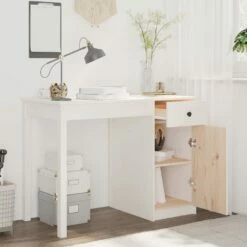 - Legno massello di pino: Il legno massello di pino è un bellissimo materiale naturale. Il legno di pino ha le venature dritte e i nodi conferiscono al materiale il suo caratteristico aspetto rustico. Questa scrivania da ufficio è realizzata in legno massello di pino per una maggiore robustezza e durata.