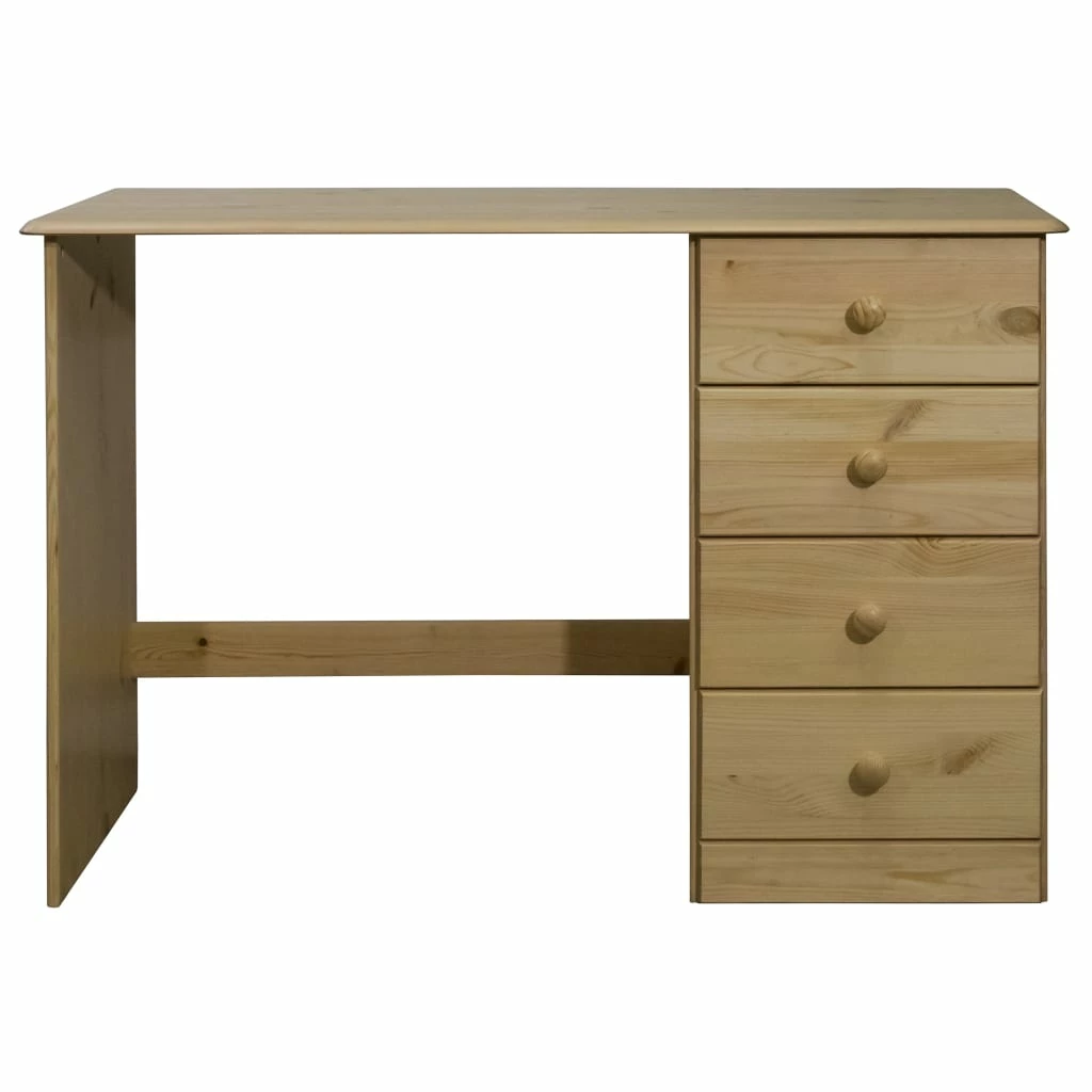 La scrivania per computer è realizzata in legno massello di pino, ciò conferisce al mobile una lunga durata nel tempo. Ogni pomello rotondo in legno è progettato per aprire facilmente il cassetto. Questa scrivania offre tanto spazio con i suoi cassetti integrati, pertanto è ideale per riporre libri, riviste, cartelle e altri oggetti essenziali.