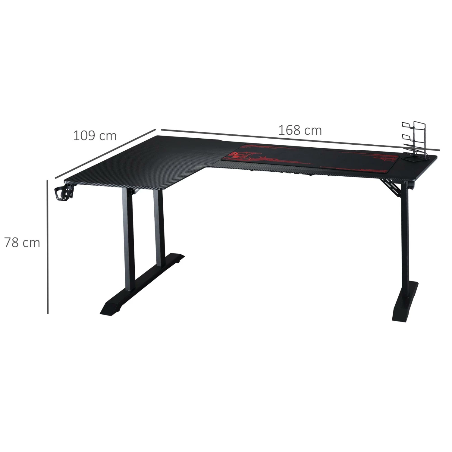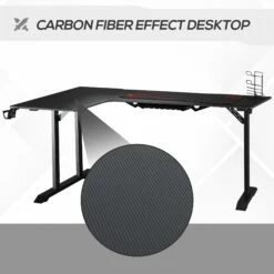 Per lavorare e giocare al meglio hai bisogno della postazione giusta e la scrivania angolare è quello che fa per te! Ha un design accattivante con superficie effetto fibra di carbonio ed è dotata di pratici accessori come gancio porta cuffie, porta tazza e supporto per gamepad. Grazie alla struttura in metallo, questa scrivania moderna è destinata a durare a lungo, per accompagnarti in ogni avventura nelle tue sessioni di gaming.
