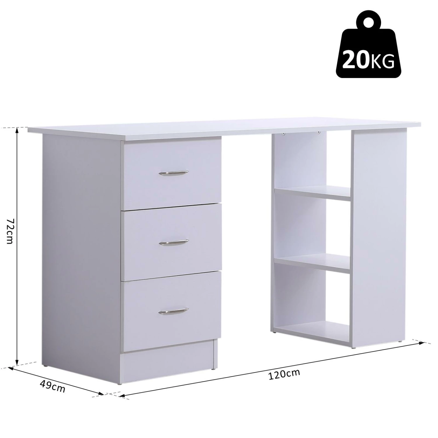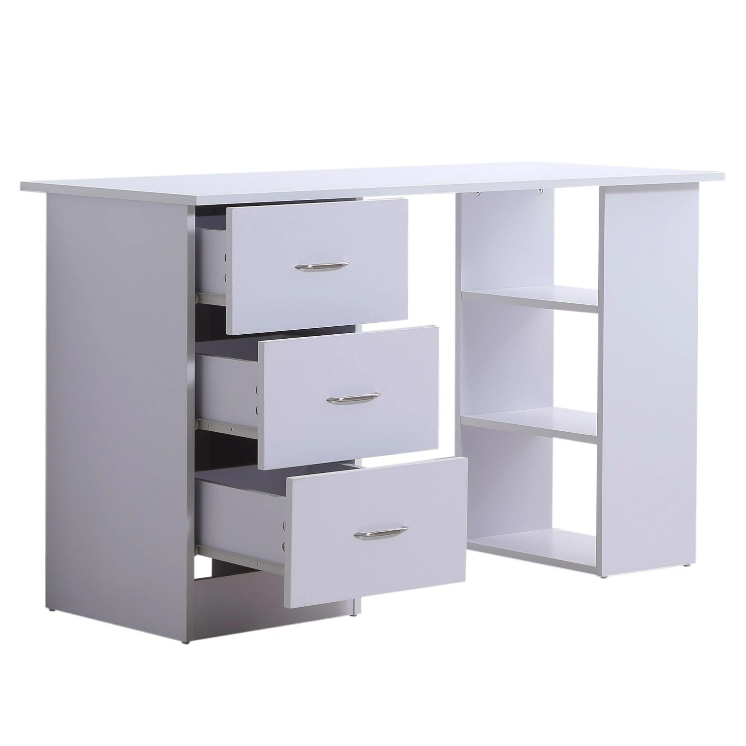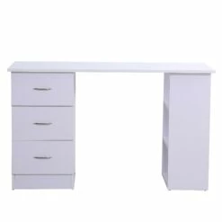 Scrivania da Ufficio con 3 Cassetti e Ripiani in Legno Bianco 120x49x72 cm