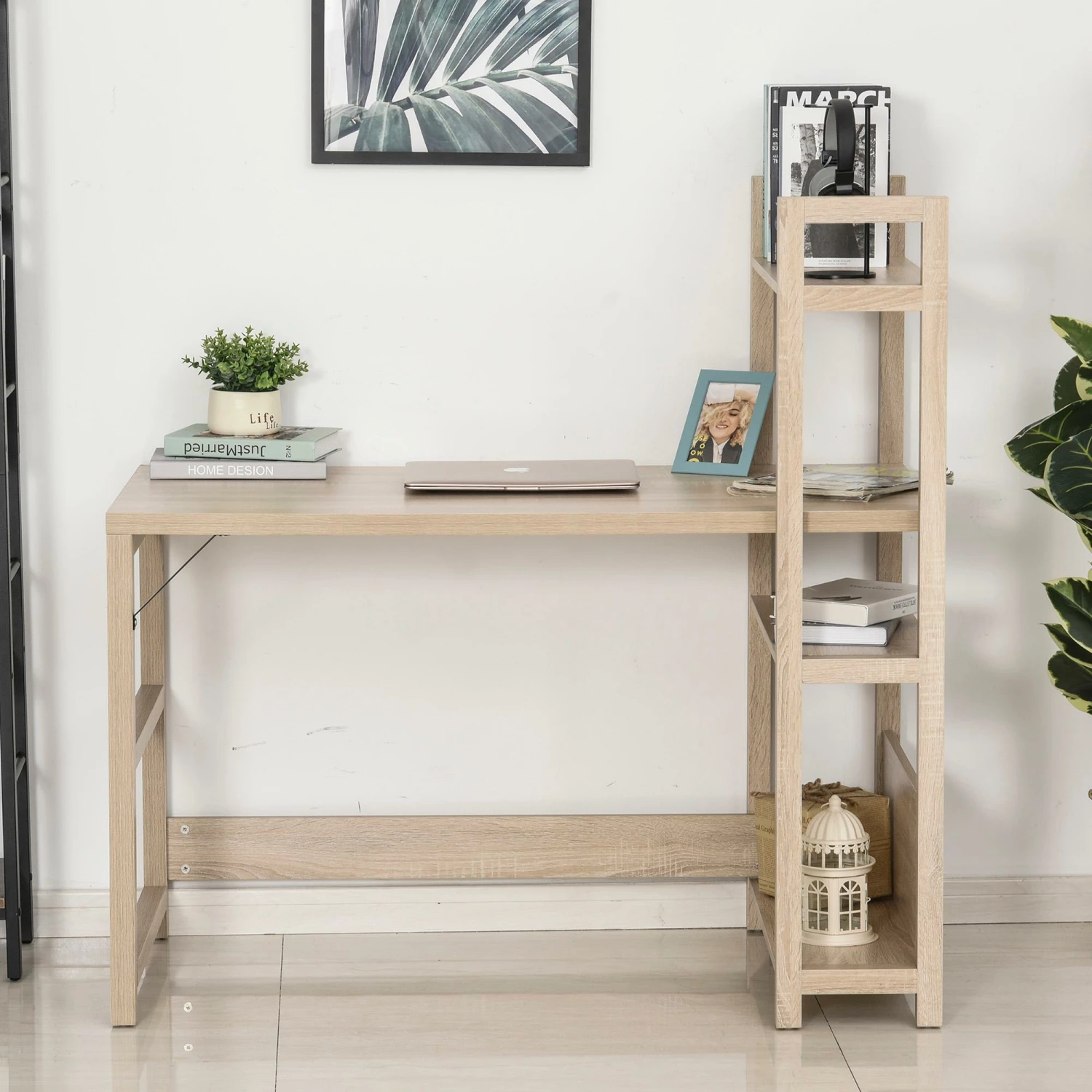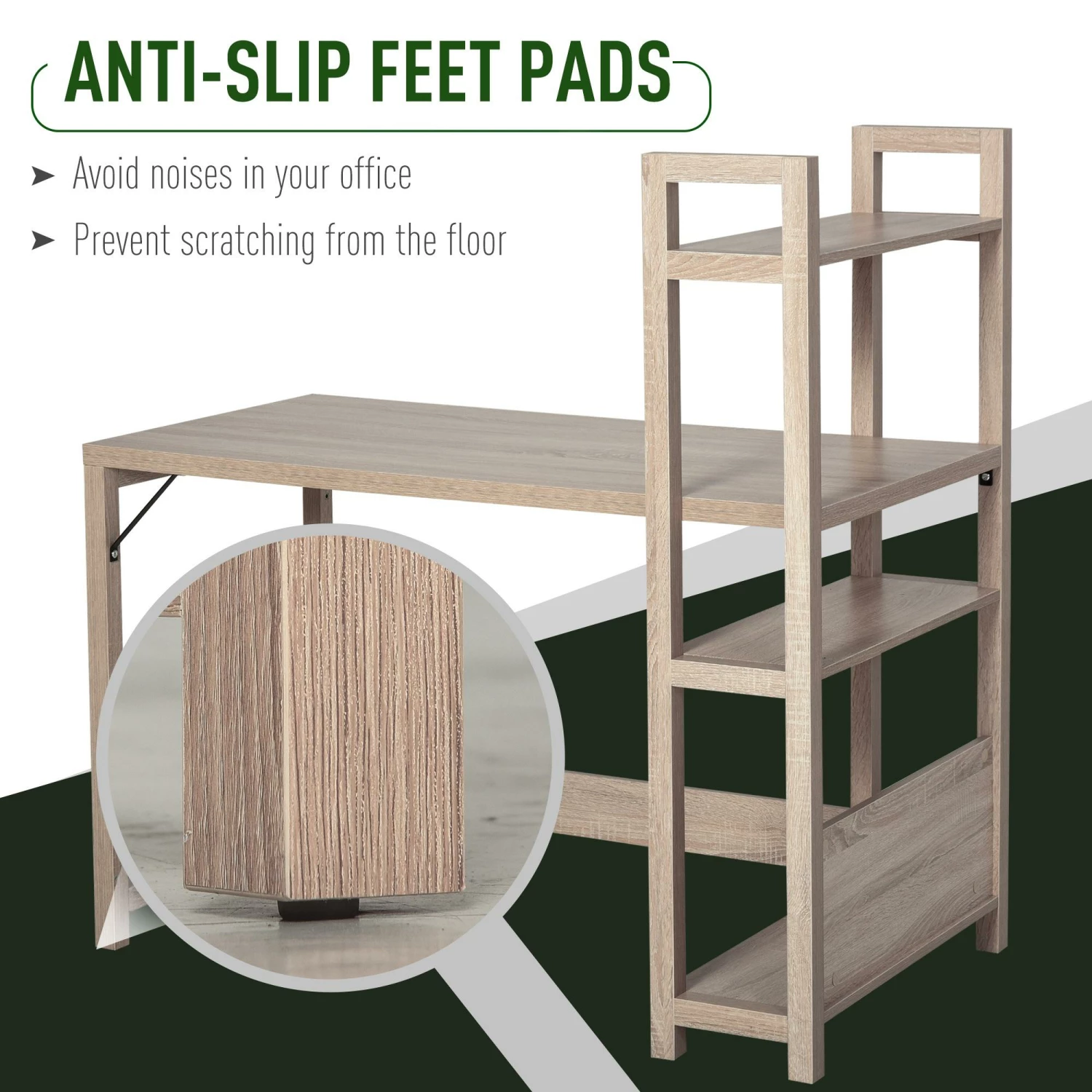 Scrivania combinata con libreria di , con venatura del legno, gambe con linea semplice, è moderno, si adatta perfettamente all’arredo della tua camera, del studio o del tuo ufficio. L’ampia scrivania e il ripiano laterale, offre spazio sufficiente per riporre oggetti in ordine. Telaio rinforzato per una maggiore resistenza. Arreda la tua stanza, il tuo ufficio o il tuo studio con eleganza insieme a !
