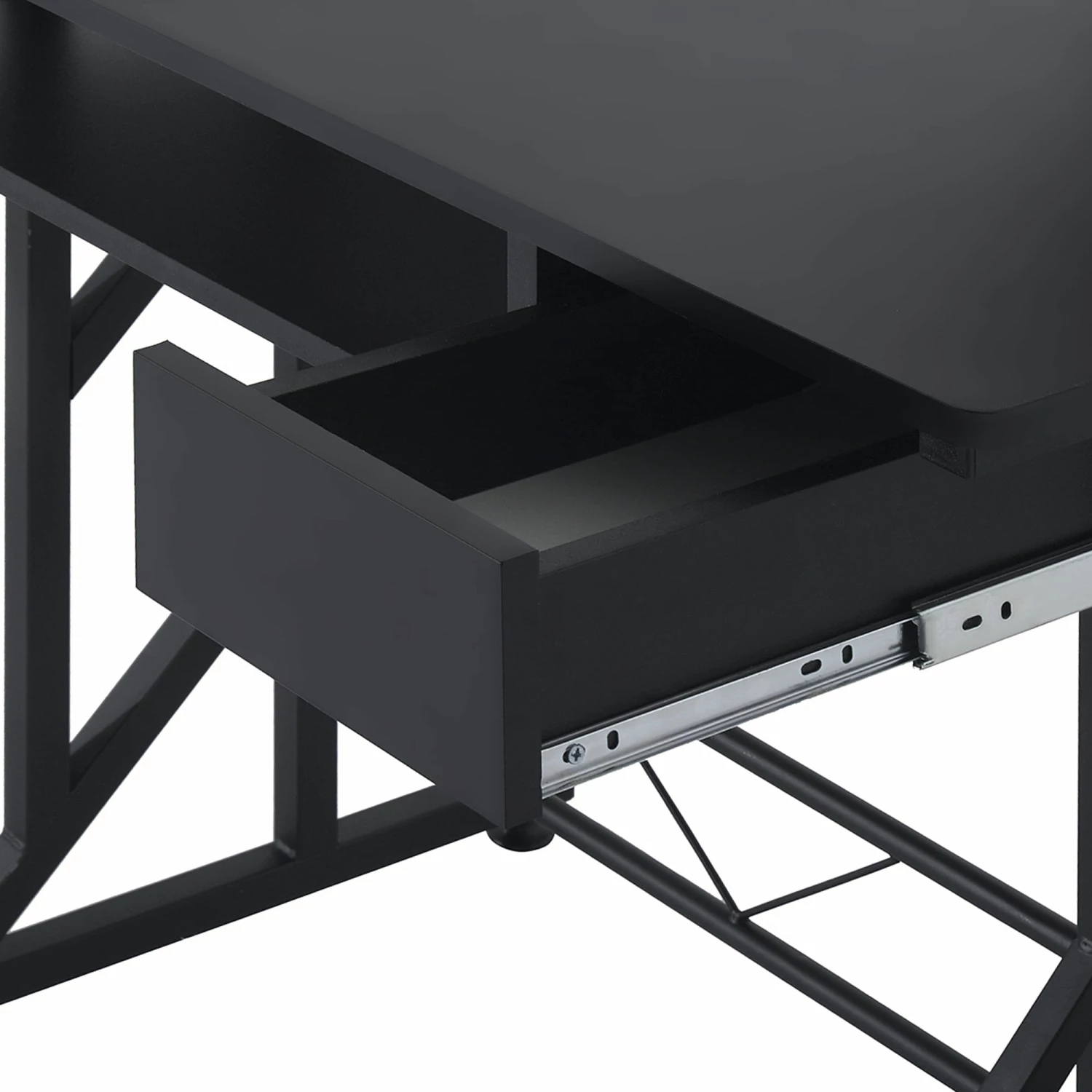 Questa scrivania per computer è costruita in acciaio e MDF. Grazie al suo design compatto, occupa pochissimo spazio ed è perfetta per ambienti di piccole dimensioni. Ha una sezione dedicata per la CPU, un ripiano tastiera estraibile, un comodo cassetto e un ripiano superiore che puoi montare sia a destra che a sinistra. Riorganizza il tuo ufficio o la tua postazione studio con questa pratica scrivania.