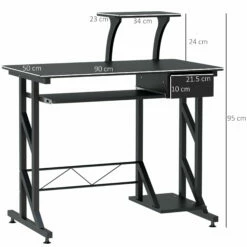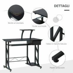 Scrivania da Ufficio Porta PC 90x50x95 cm in Acciaio e MDF Nero