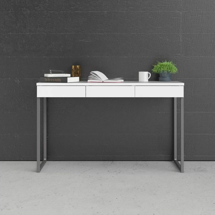 Scrivania Lineare A Tre Cassetti, Colore Bianco Lucido, Cm 125 X 76 X 51