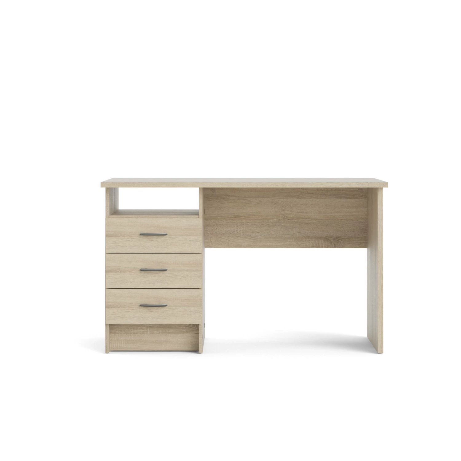 Scrivania Lineare Con Tre Cassetti, Colore Rovere, Misure 120 X 72 X 48 Cm