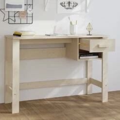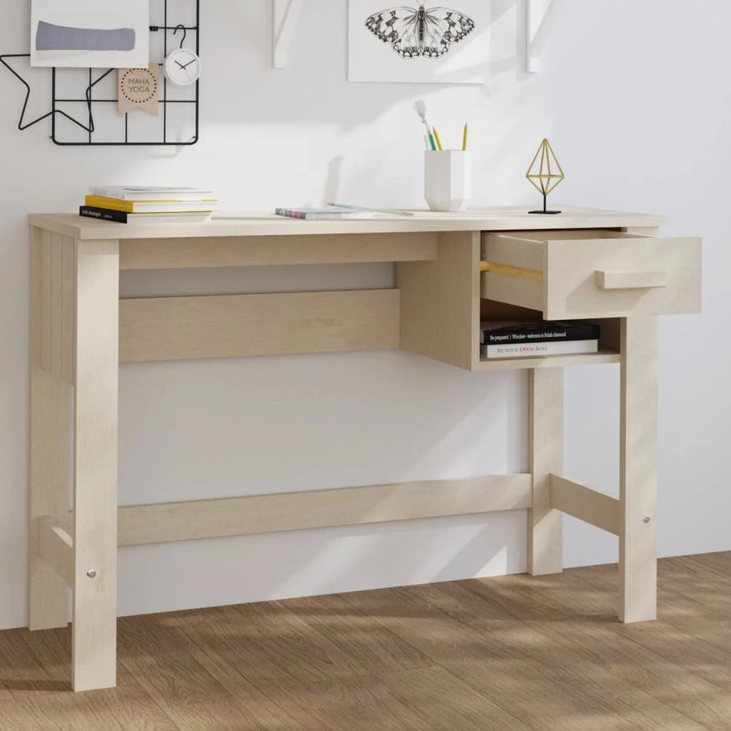 La scrivania è realizzata in legno di pino massello, che la rende robusta e stabile. La scrivania per computer è dotata di un cassetto e di uno scomparto aperto dove conservare i vostri documenti e altri elementi essenziali per il vostro ufficio in casa, tenendoli organizzati e a portata di mano.