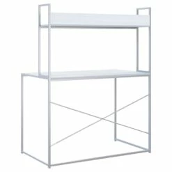 La scrivania è dotata di uno scaffale per tenere in ordine libri o esporre oggetti decorativi. Realizzato in truciolato e metallo verniciato a polvere, lo scrittoio è estremamente stabile, robusto e resistente. Inoltre, il telaio in metallo dona alla scrivania uno stile industriale, conferendo un tocco di fascino unico ai vostri interni. Ravvivate i vostri interni con questa moderna scrivania!