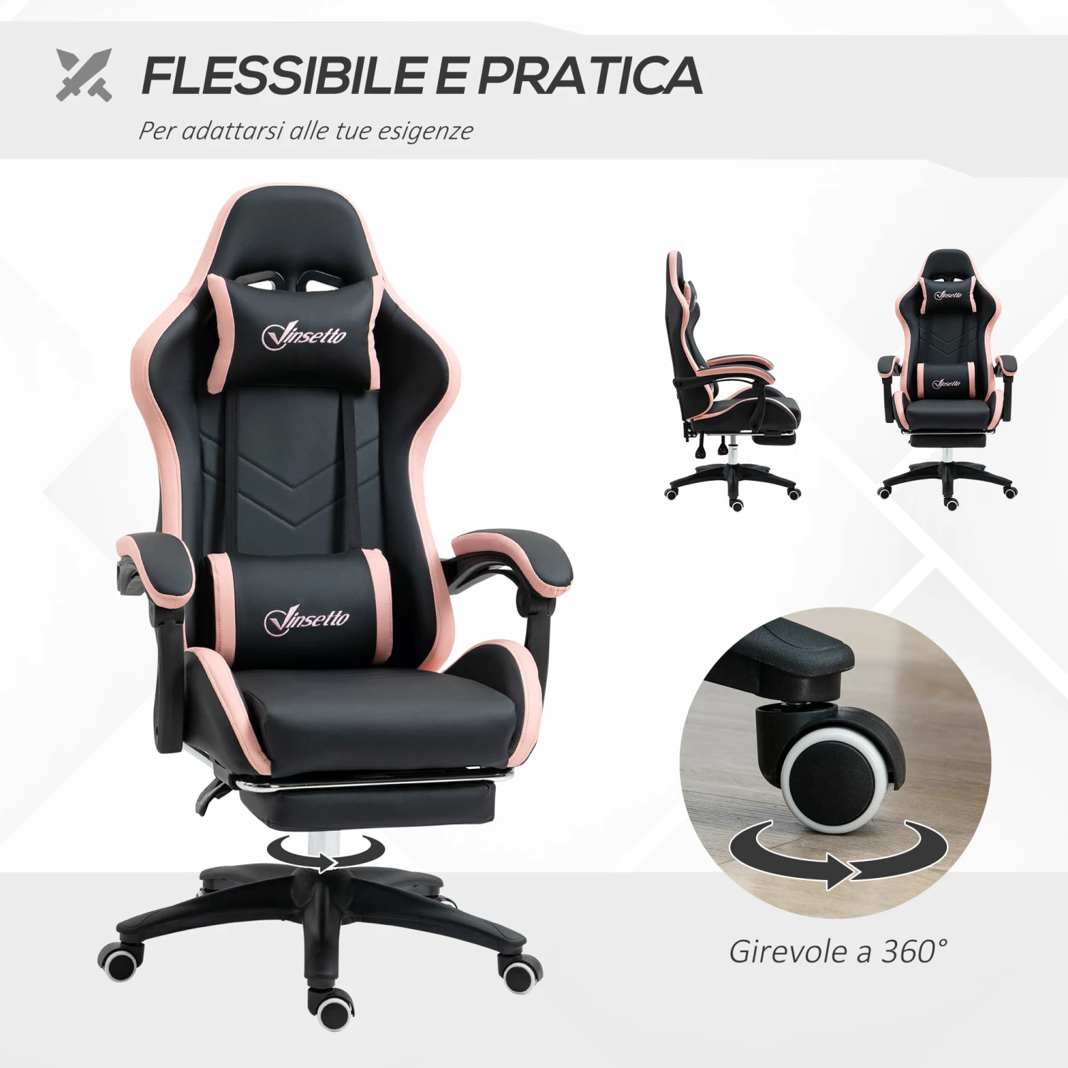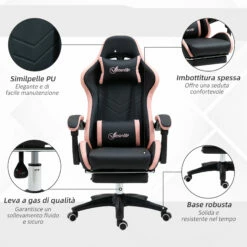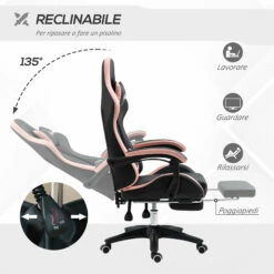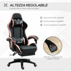 Sedia da Gaming Ergonomica 65x65x121-129 cm in Similpelle Rosa e Nero