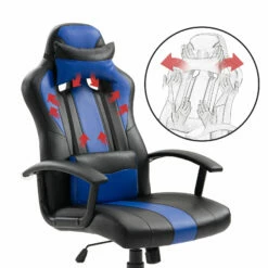 Sedia Da Gaming Ergonomica Altezza Regolabile Con Cuscino, Nero E Blu