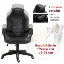 Sedia Da Gaming Ergonomica Massaggiante Riscaldante In Similpelle Nera
