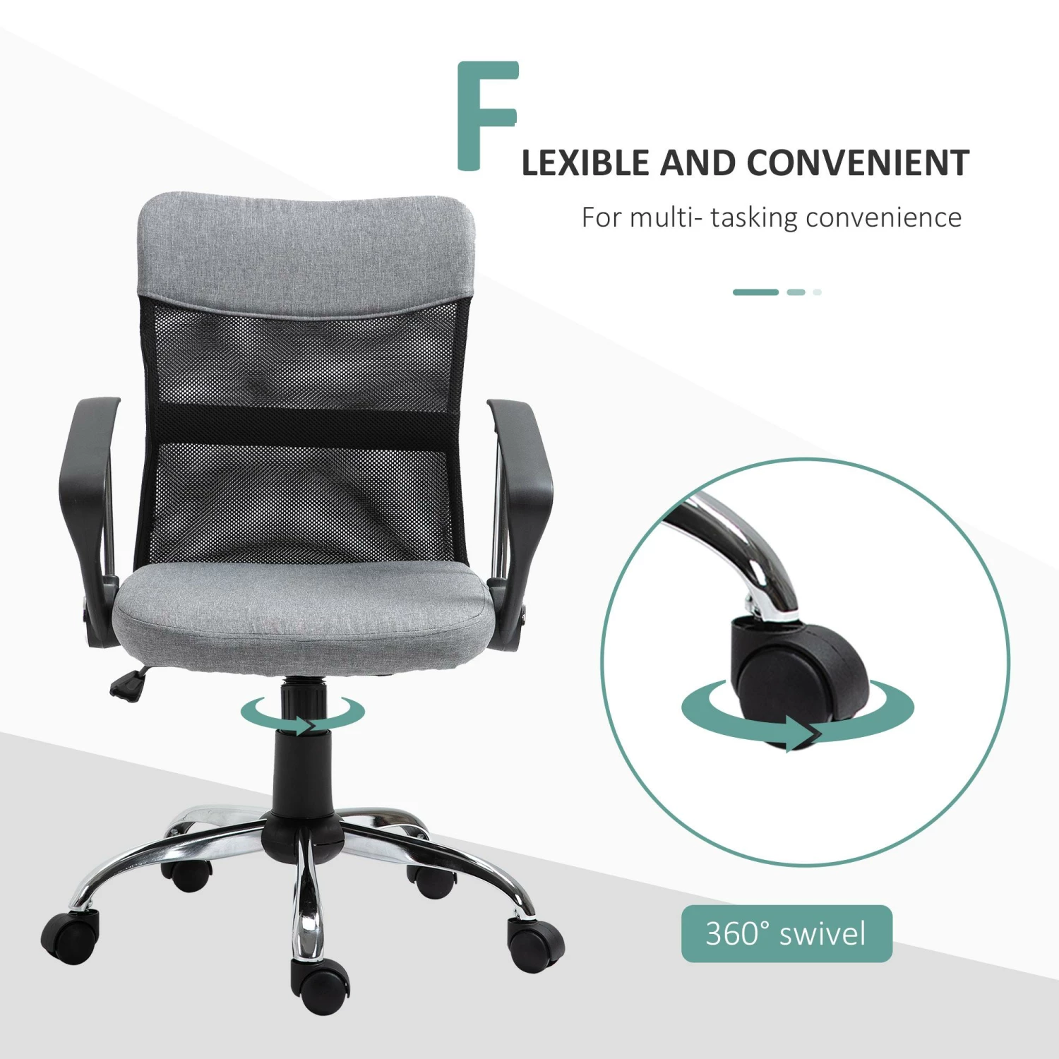 - GIREVOLE: Seduta girevole a 360° e 5 ruote omnidirezionali super silenziose.