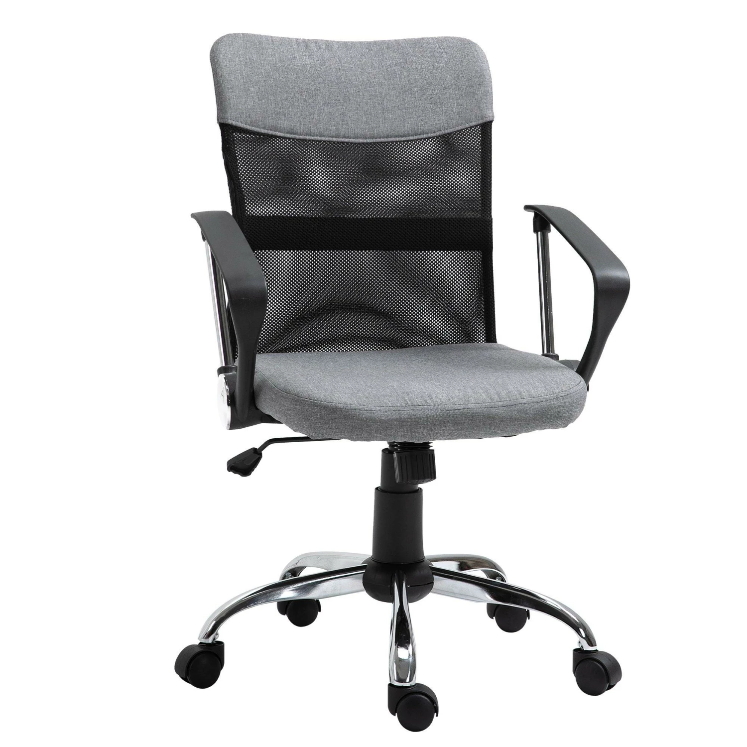 Lavorare da casa è scomodo? Sì, se non hai la sedia giusta! Con questa poltrona da ufficio puoi dire addio a mal di schiena e muscoli contratti. Progettata per offrirti il massimo comfort, la nostra sedia girevole ha una seduta imbottita, due comodi braccioli, altezza regolabile e uno schienale in tessuto a rete traspirante. Trasforma subito la tua postazione di lavoro e dalle un tocco professionale con questa poltrona da ufficio .