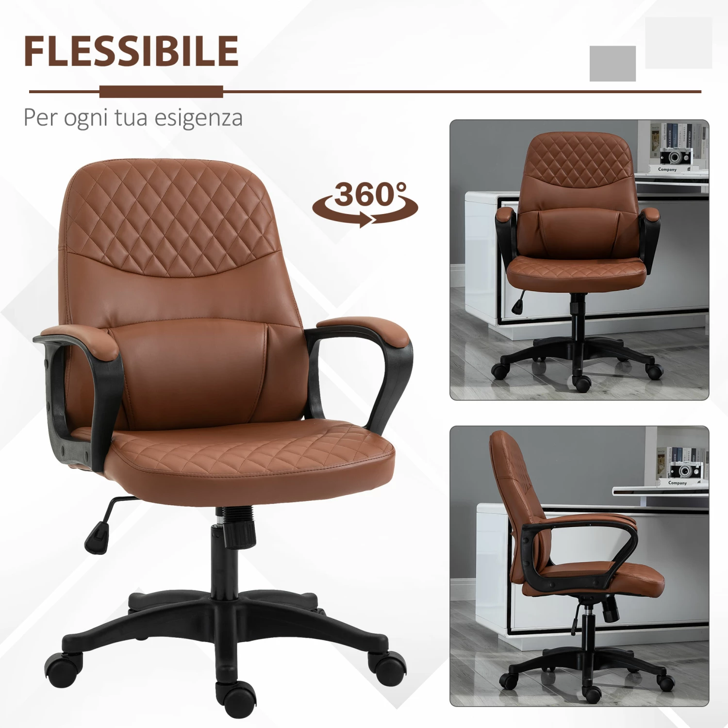 Sedia Poltrona Operativa da Ufficio in Similpelle Marrone