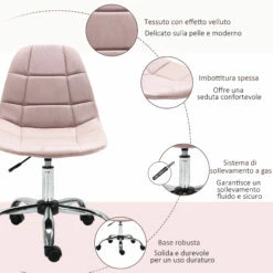 Sedia Poltrona Operativa da Ufficio in Tessuto Vellutato Rosa